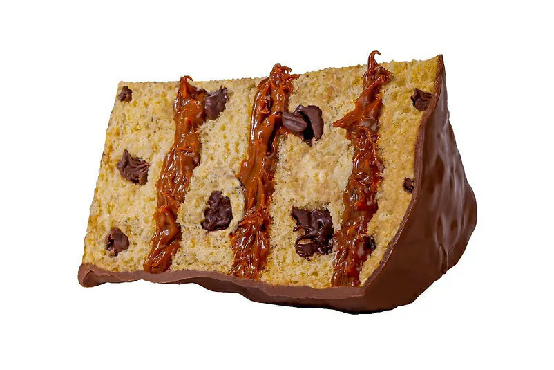 Panetone de 750g com 3 camadas de recheio de doce de leite e coberto por uma deliciosa camada de chocolate, perfeito para adoçar suas festas!